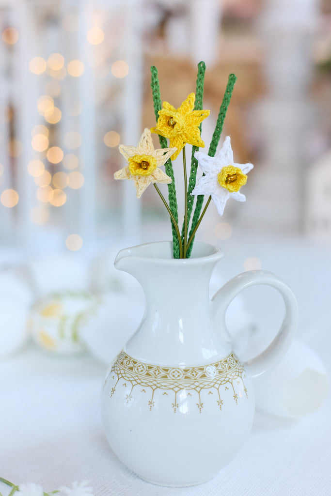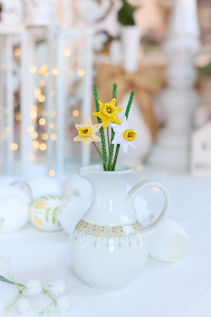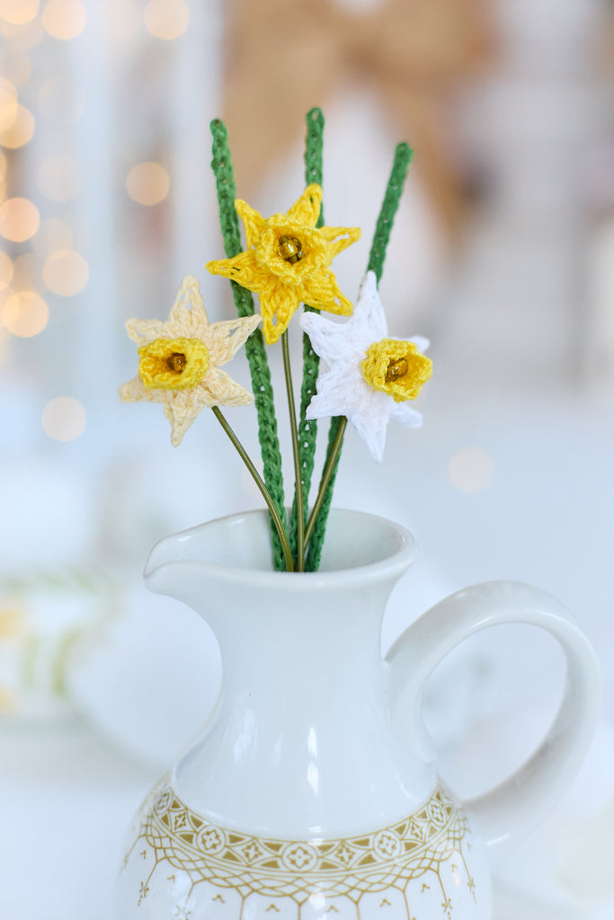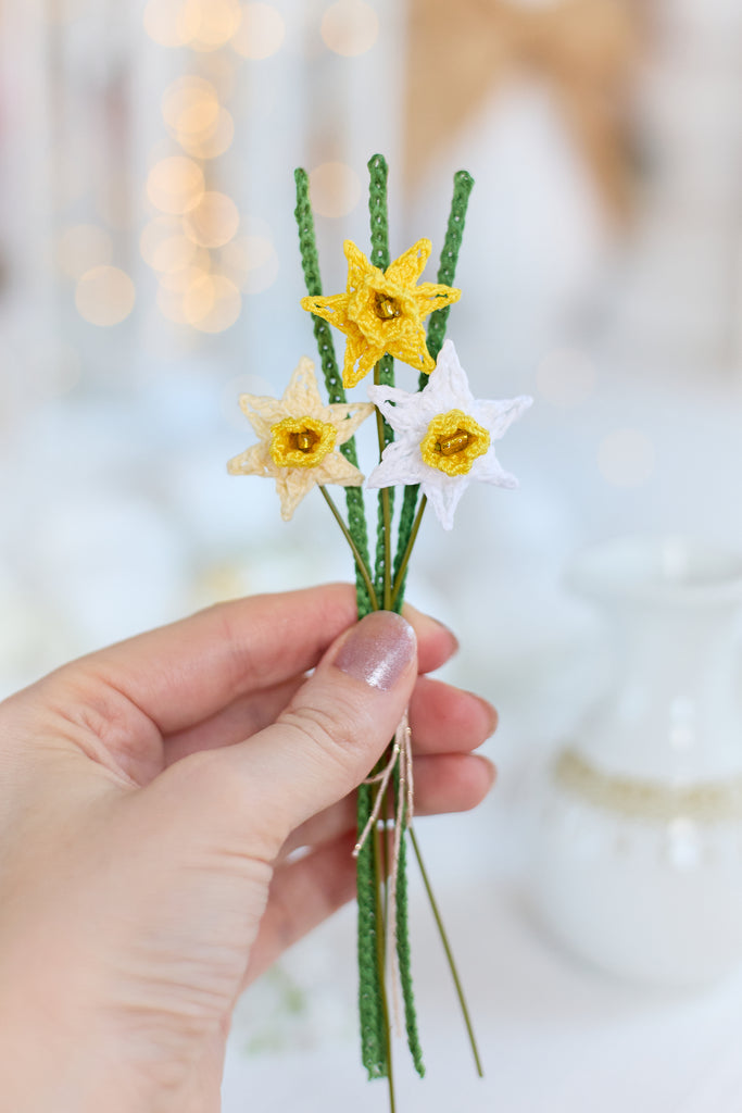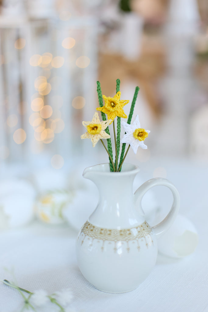 A delicate bunch of 3 mini daffodils that come in 3 colour ways. Perfect for cheering anyone up and adding a bit of sunshine to your favourite spaces!