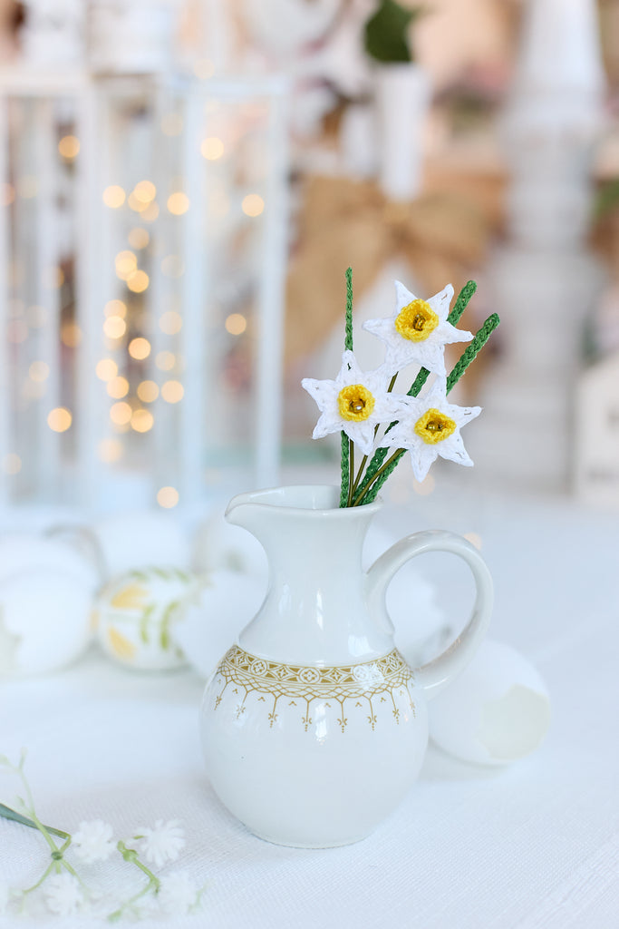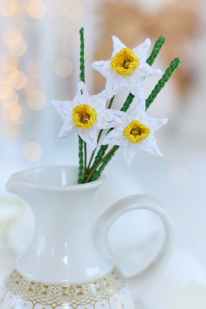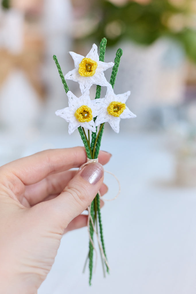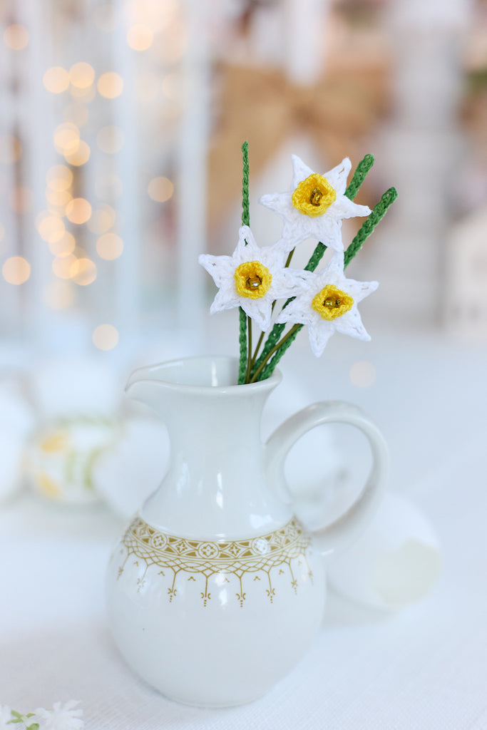 A delicate bunch of 3 mini daffodils in white. Perfect for cheering anyone up and adding a bit of sunshine to your favourite spaces!