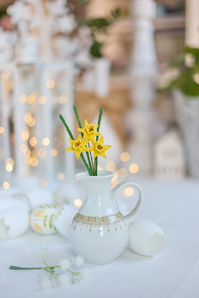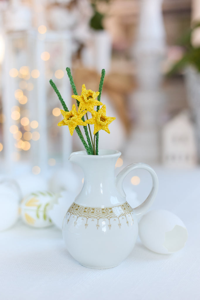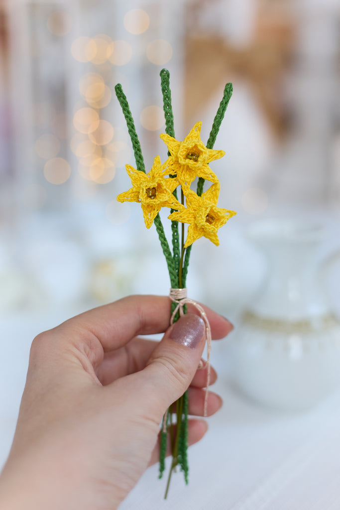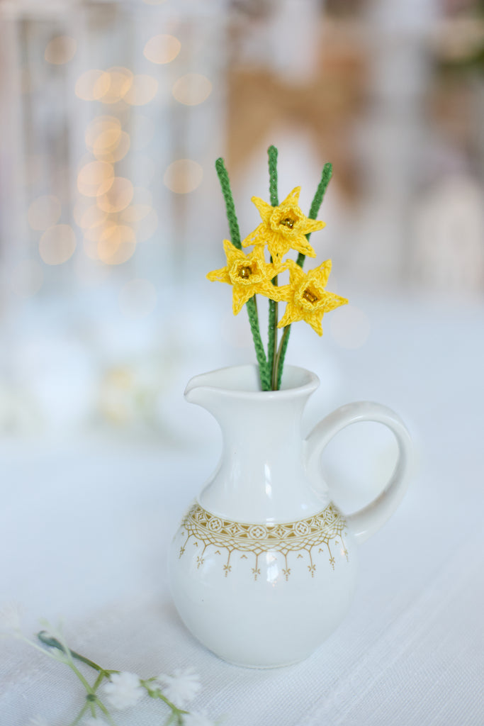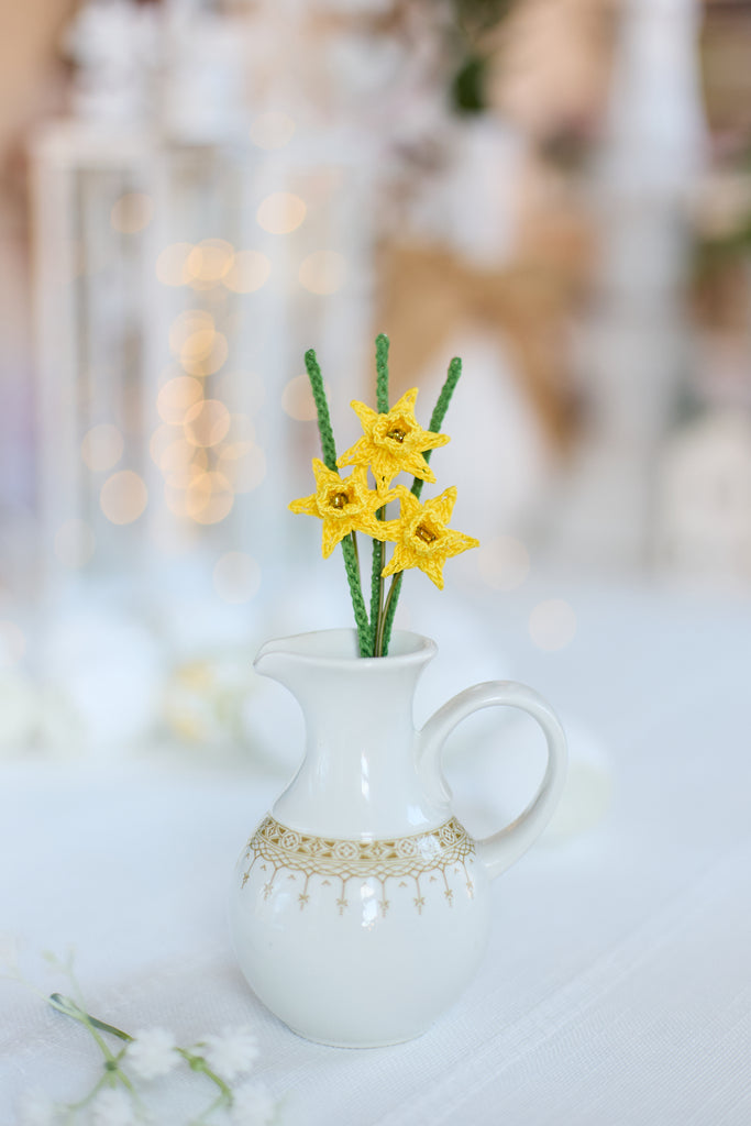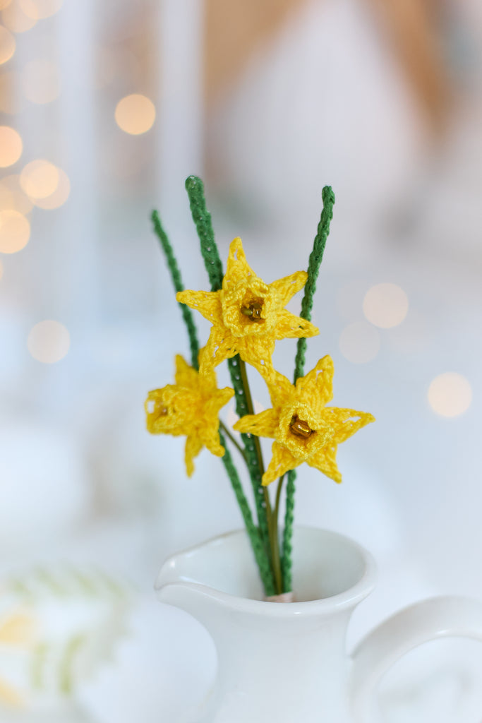 A delicate bunch of 3 mini daffodils in bright yellow. Perfect for cheering anyone up and adding a bit of sunshine to your favourite spaces!